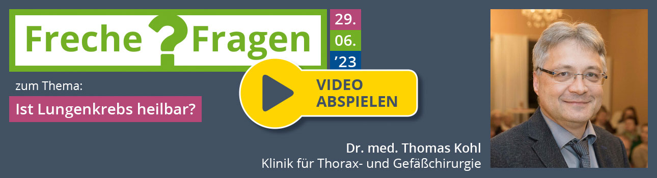 Bad Berka/Erfurt, 27. Juni 2023 --- Die Vortragsreihe der „Frechen Fragen an Chefärzte“ der Zentralklinik Bad Berka im Haus Dacheröden in Erfurt gibt am Donnerstag, den 29. Juni ab 19 Uhr, viele Antworten auf die Frage: „Ist Lungenkrebs heilbar?“. Dr. med. Thomas Kohl, Chefarzt der Klinik für Thorax- und Gefäßchirurgie informiert dann live und online im Stream.